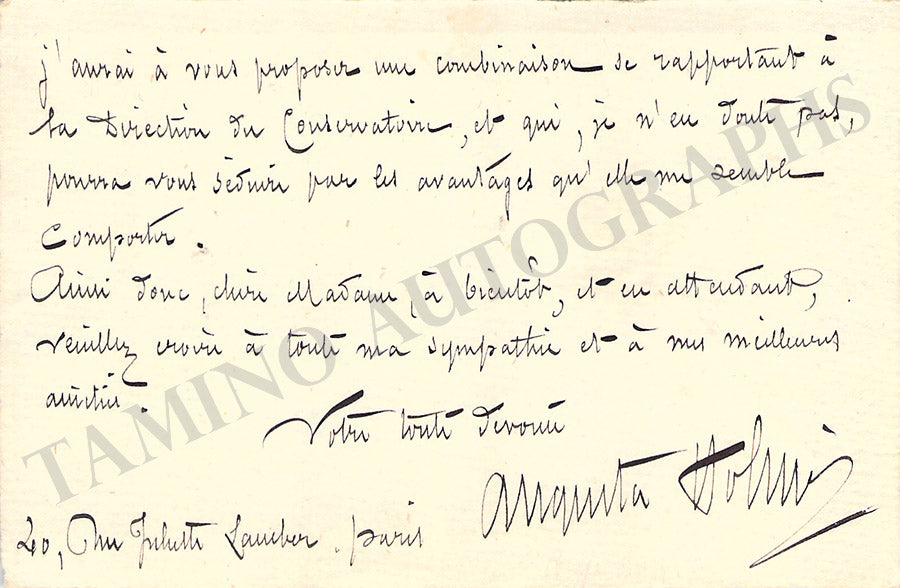 Holmes, Augusta - Autograph Letter Signed 1891 Holmes, Augusta - Autograph Letter Signed 1891