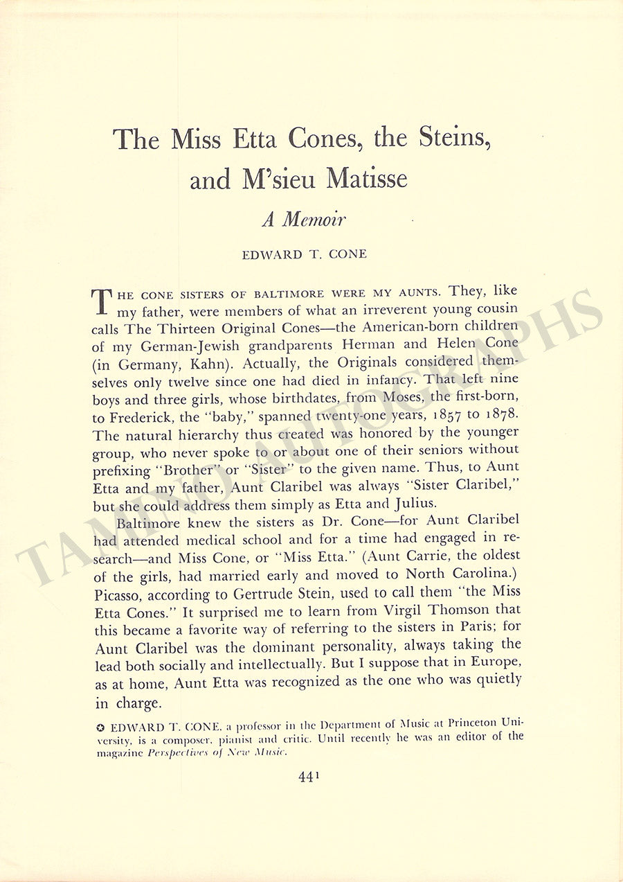 Cone, Edward T. - Signed Essay Cone, Edward T. - Signed Essay