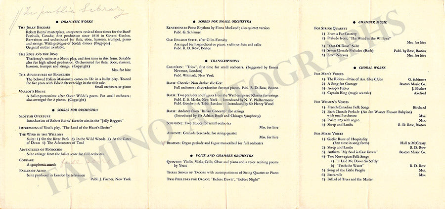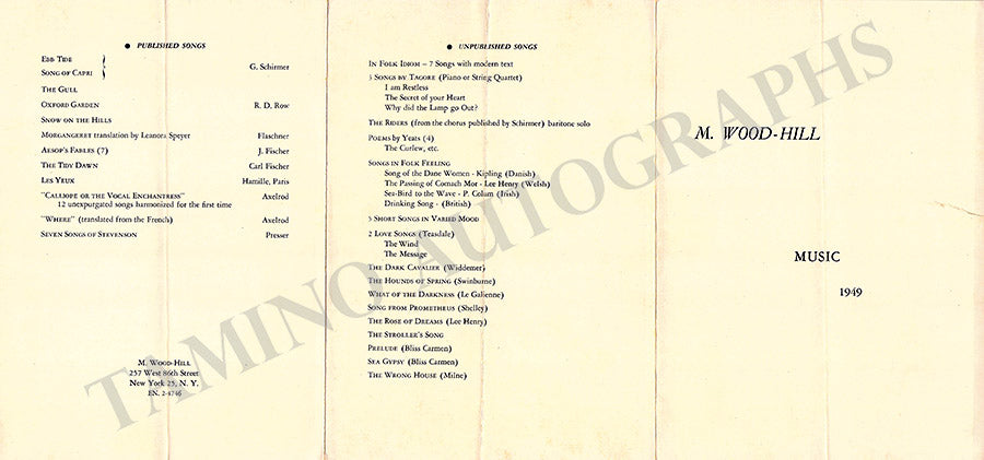ALSO INCLUDED is a trifold brochure about her work, dated 1949.