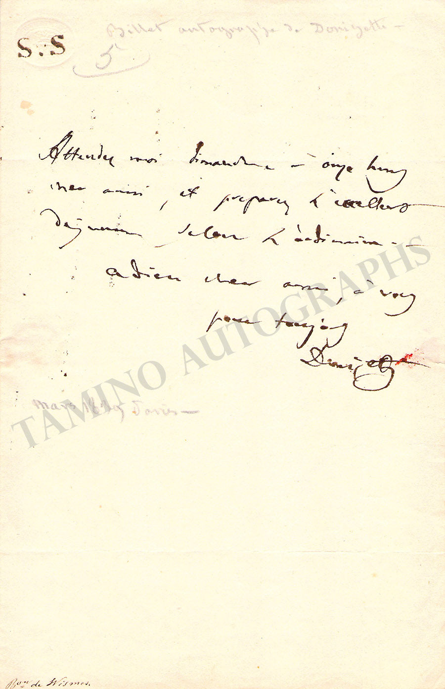 Donizetti, Gaetano - Autograph Note Signed Donizetti, Gaetano - Autograph Note Signed
