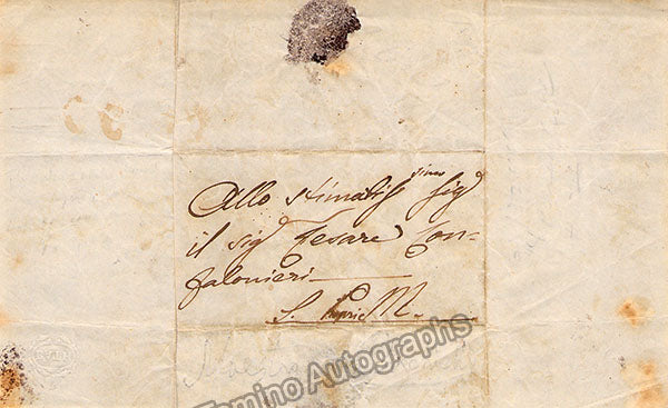 Autograph letter in Italian signed by him and dated June 16th, 1868, addressed to Cesare Confalonieri about personal matters. Size is 4.75 x 7.8 inches, some rust stains, in very good condition.
