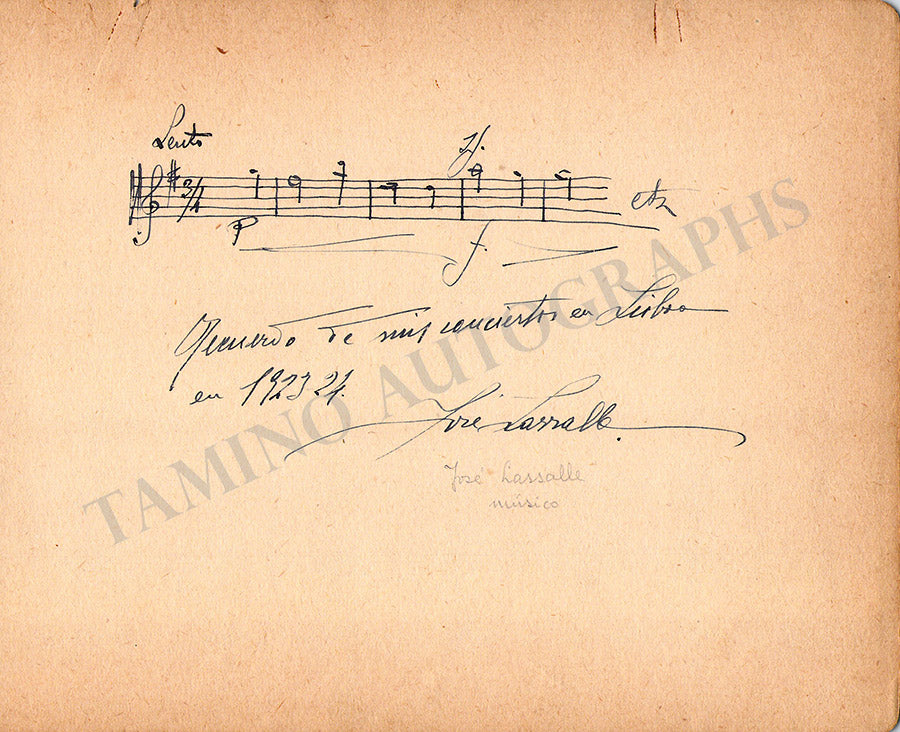 Lasalle, Jose - Autograph Music Quote Signed 1923