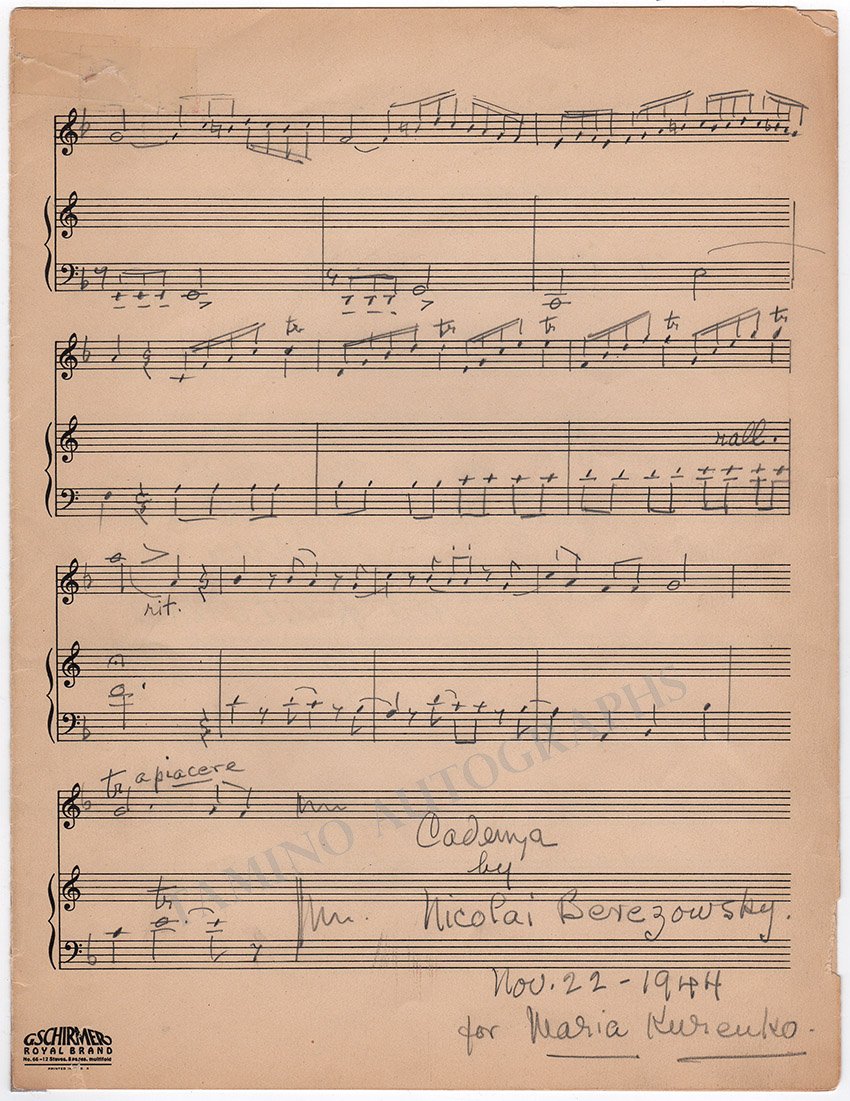 Berezowsky, Nicolai - Autograph Music Manuscript 1944 - Tamino Berezowsky, Nicolai - Autograph Music Manuscript 1944 - Tamino Berezowsky, Nicolai - Autograph Music Manuscript 1944 - Tamino
