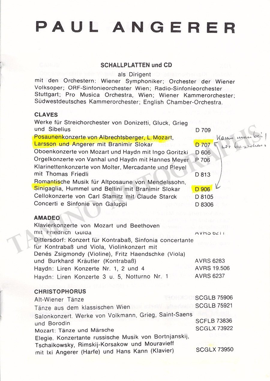 Angerer, Paul - Signed Brochure 1991 Angerer, Paul - Signed Brochure 1991