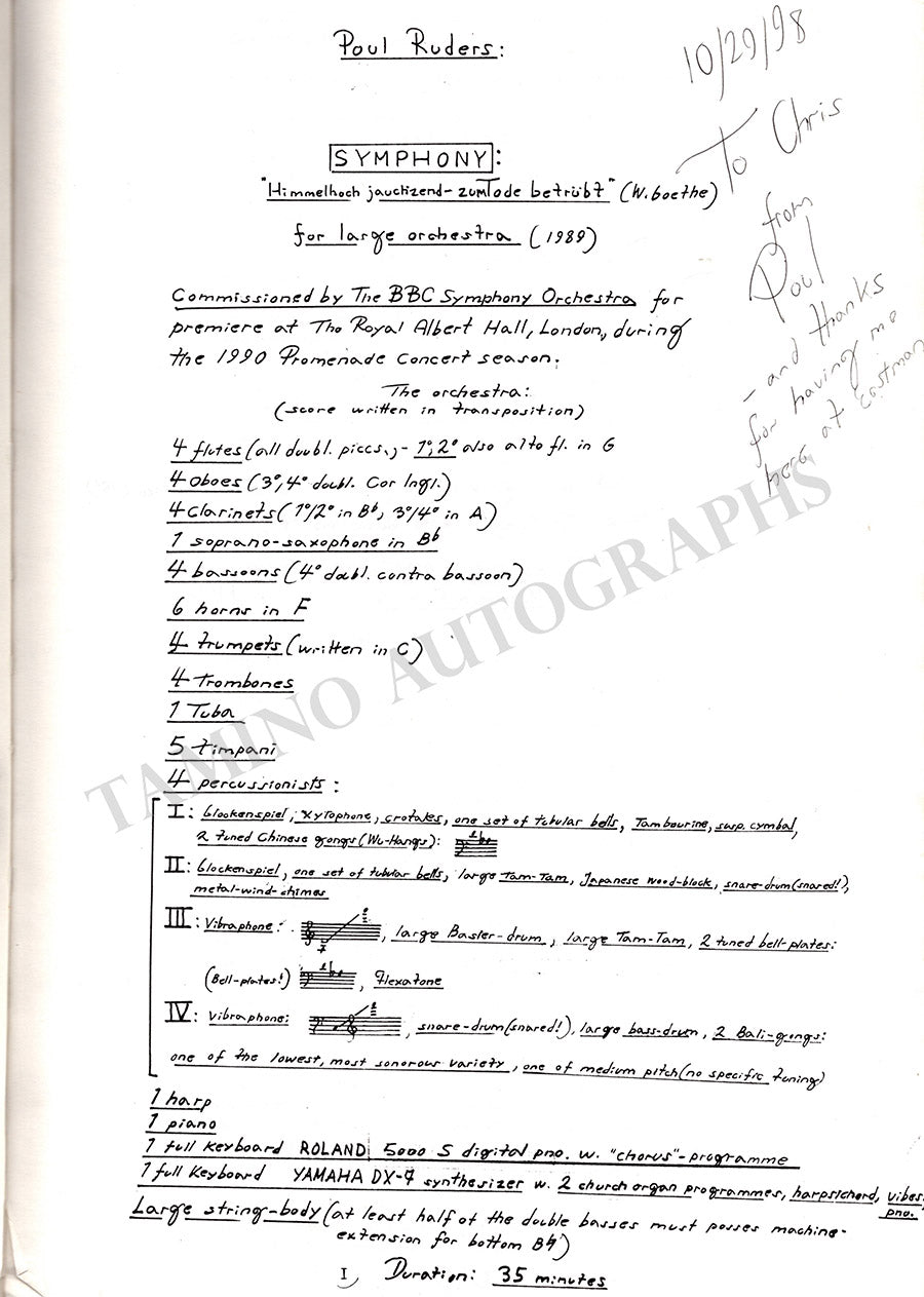 Ruders, Poul - Signed Score Symphony 1 Ruders, Poul - Signed Score Symphony 1 Ruders, Poul - Signed Score Symphony 1