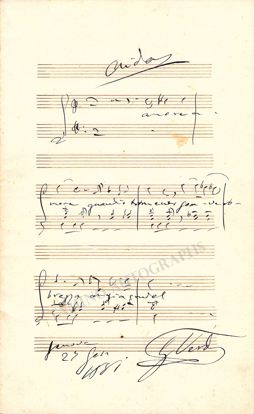 Verdi, Giuseppe - Signed Autograph Music Quote from Aida 1881