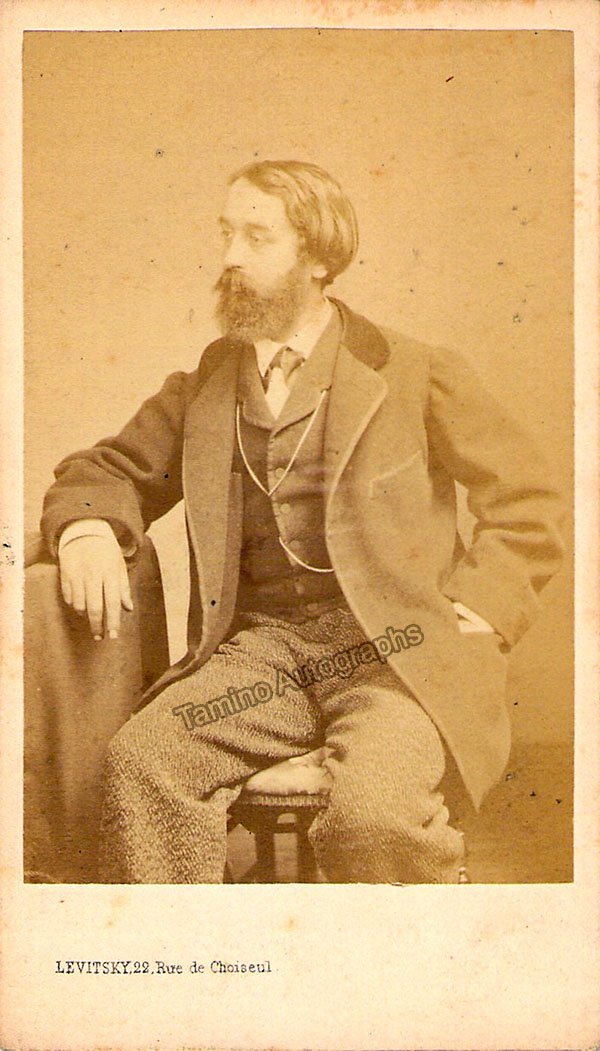 Italian scenographer and painter (1829-1895). Signed carte-de-visite by Levitsky, Paris, inscribed, signature is on verso. Size 2.5 x 4.1 inches in excellent condition.