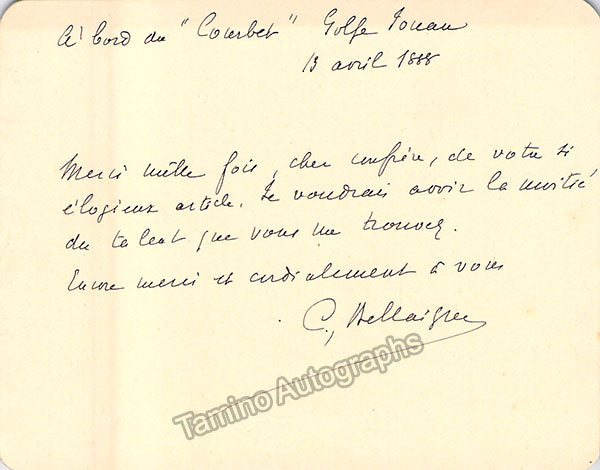 Group of 2 autograph notes signed, each on a 3.5 x 4.5 inch card, both dated in 1888, written in French and sold untranslated. Clear handwriting and signature. Both in excellent condition, not sold separately.