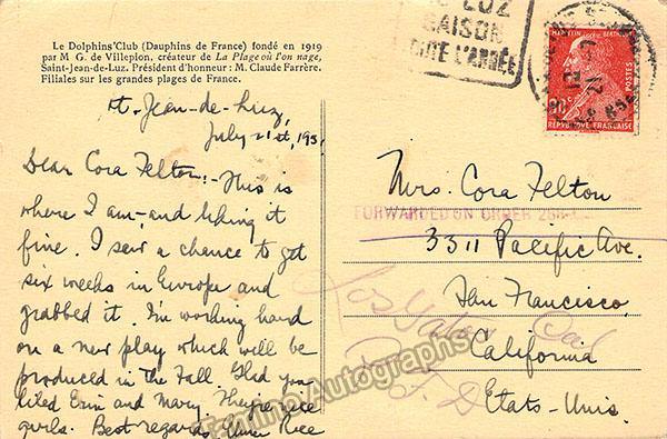 Rice, Elmer - Autograph Note Signed 1951 - Tamino Rice, Elmer - Autograph Note Signed 1951 - Tamino