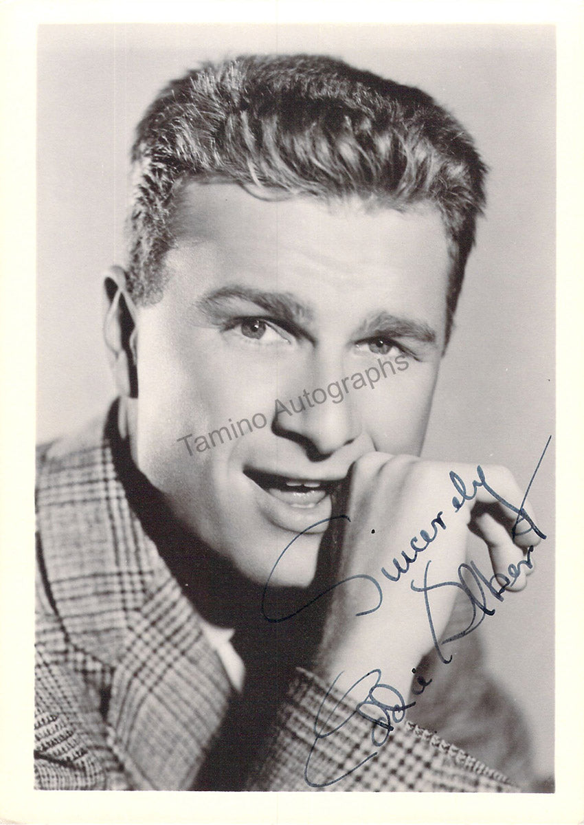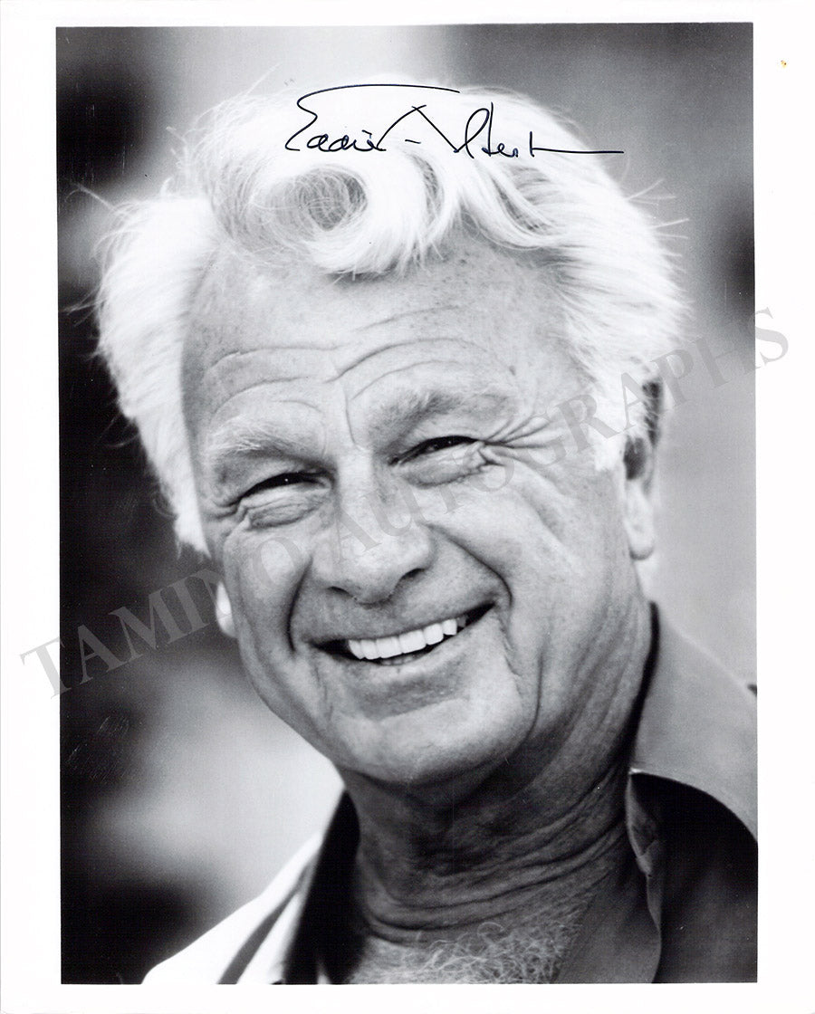 Beautiful black-and-white photograph signed by him, shown as himself. Size is 7.9 x 10.1 inches, in excellent condition. Authentication sticker by Beckett over the lower-right corner.
