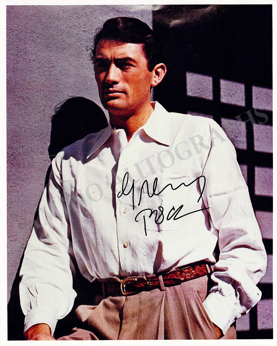 Beautiful color movie-still photograph signed by him, shown in the film 'To Kill a Mockingbird' (1962). Size is 7.9 x 9.9 inches, in excellent condition.