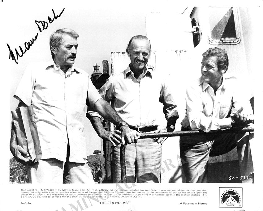Black-and-white movie-still photograph of the film 'The Sea Wolves' (1980) signed by him. Size is 10 x 8 inches, in excellent condition.