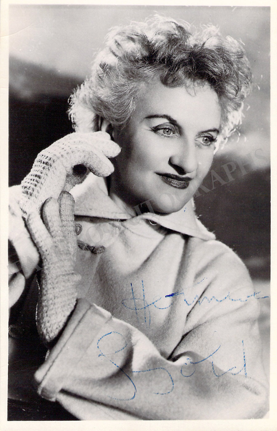 Black-and-white photograph signed by her. Size is 3.3 x 5.25 inches, in excellent condition.