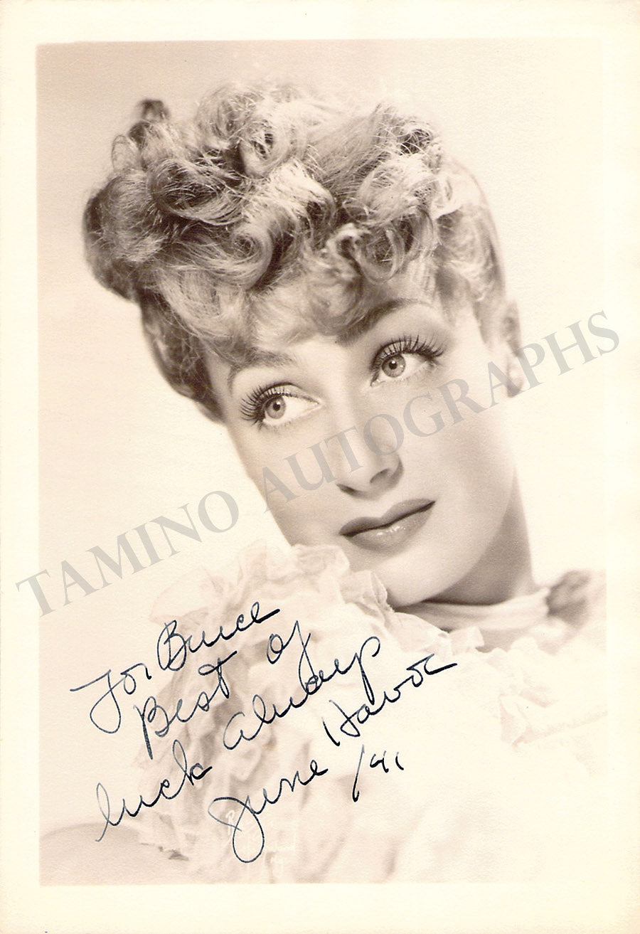 Black-and-white photograph signed by her with a short greeting. Size is 3.5 x 5.5 inches, in excellent condition.