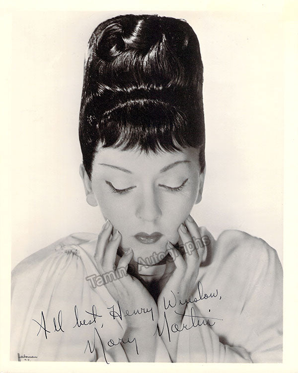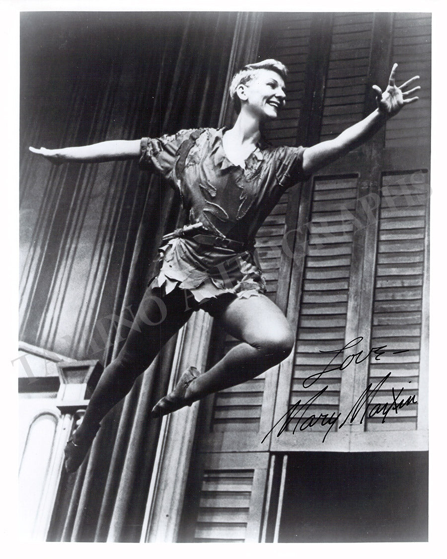 Black-and-white photograph signed by her with a short sentiment, shown in performance as Peter Pan. Size is 7.9 x 10 inches, in excellent condition.
