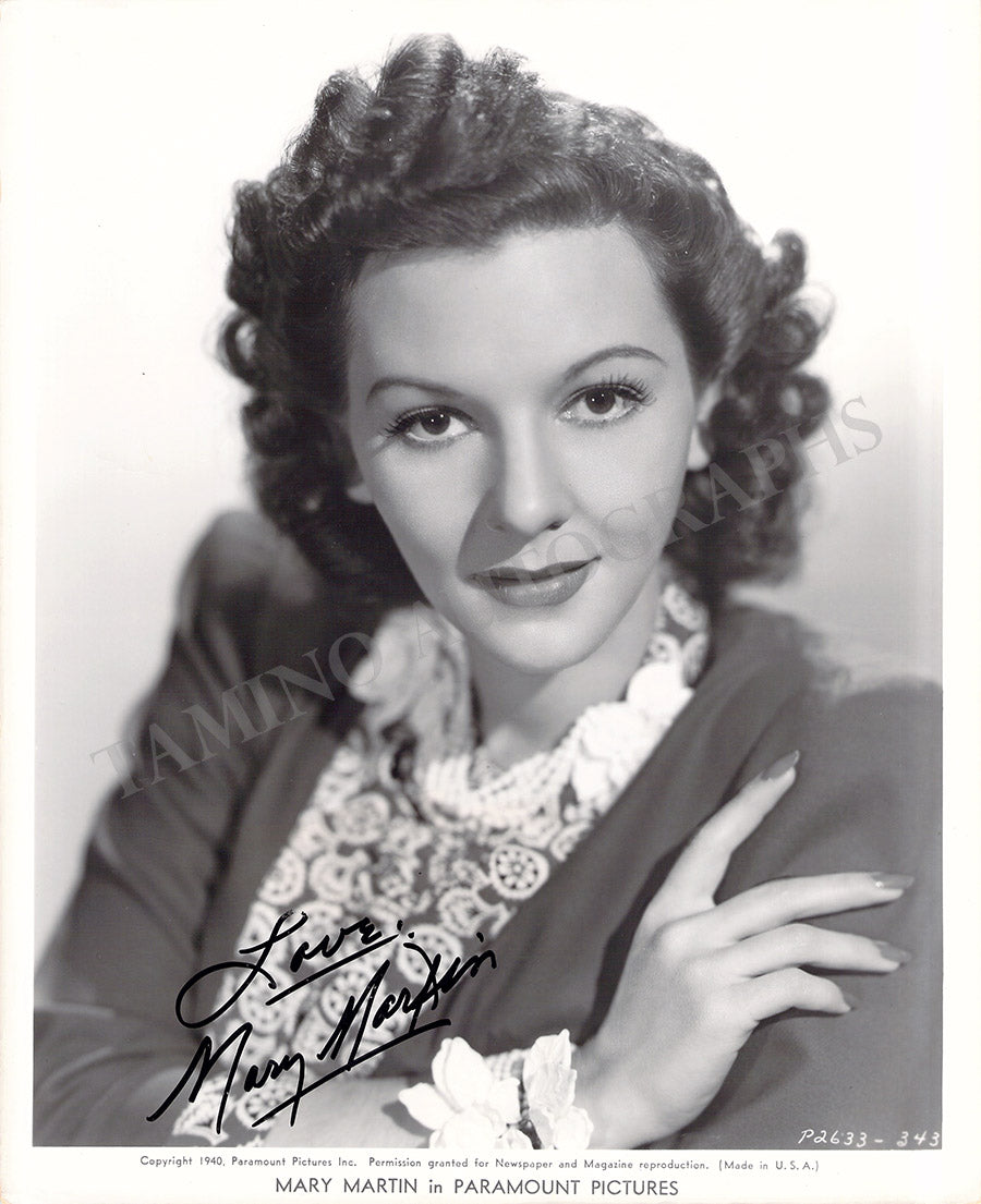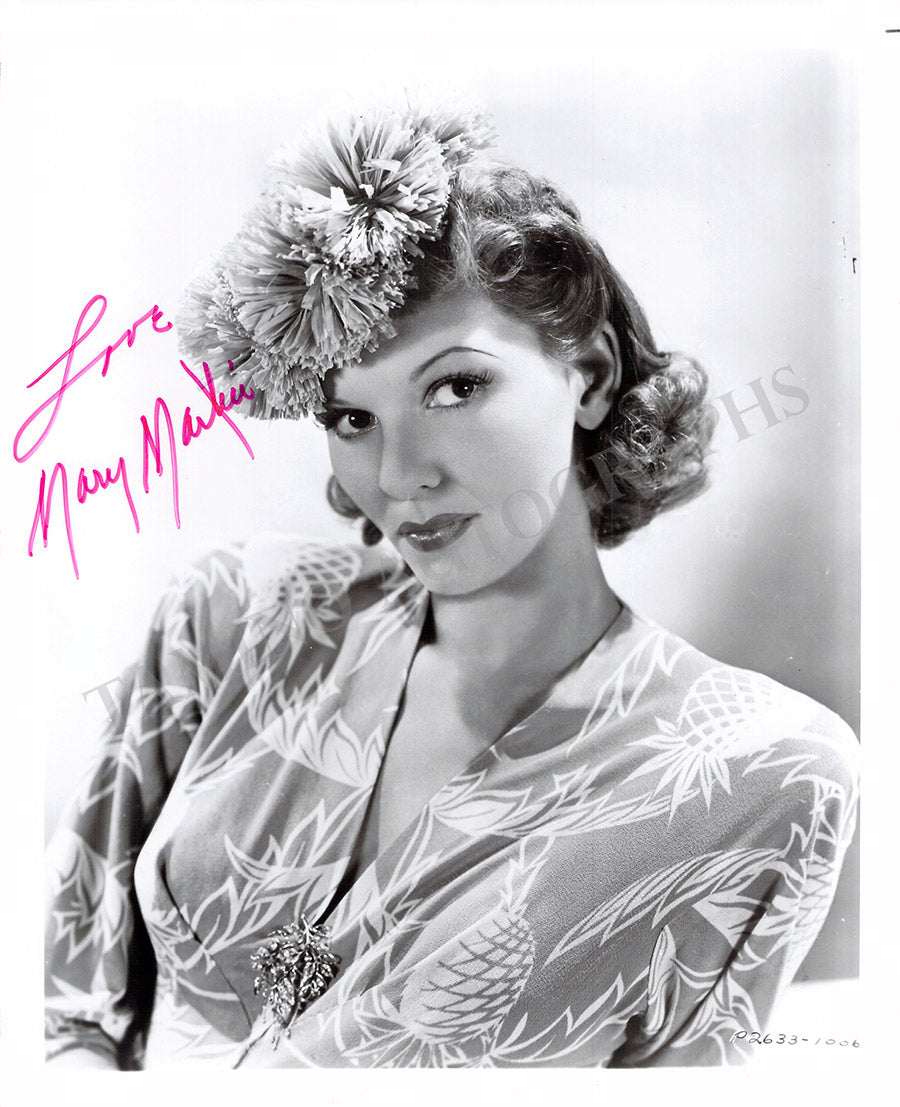 Nice black-and-white promo photograph by Paramount Pictures signed by the actress, shown young. Size is 8.1 x 10 inches, in very good condition.