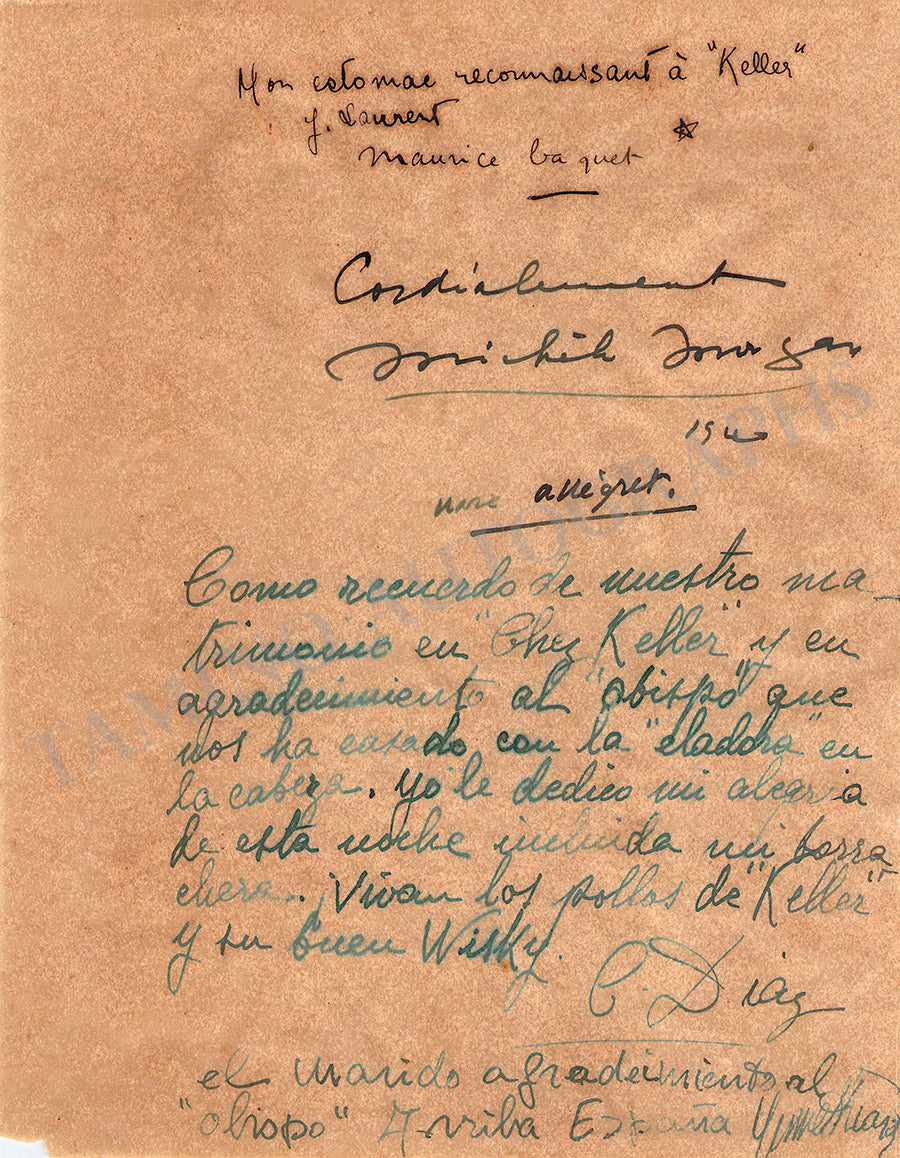 Morgan, Michele - Allegret, Marc - Baquet, Maurice - Signed Page