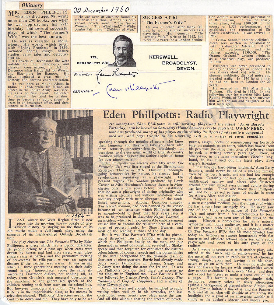 Card signed by the author mounted on a larger piece of paper with a newspaper article about his death, dated December 30th, 1960. Size is 8.4 x 9.4 inches, in excellent condition.