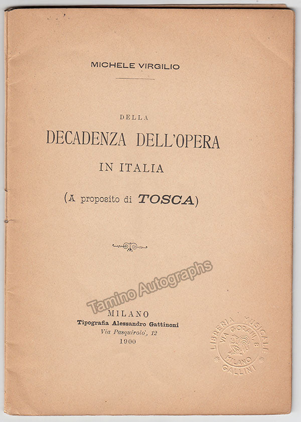 Virgilio, Michele - Signed Brochure on Tosca World Premiere Virgilio, Michele - Signed Brochure on Tosca World Premiere