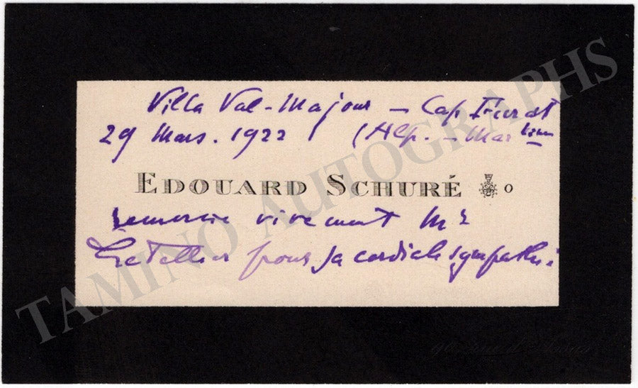 Schure, Edouard - Autograph Letter Signed 1921 & Visiting Card Schure, Edouard - Autograph Letter Signed 1921 & Visiting Card Schure, Edouard - Autograph Letter Signed 1921 & Visiting Card