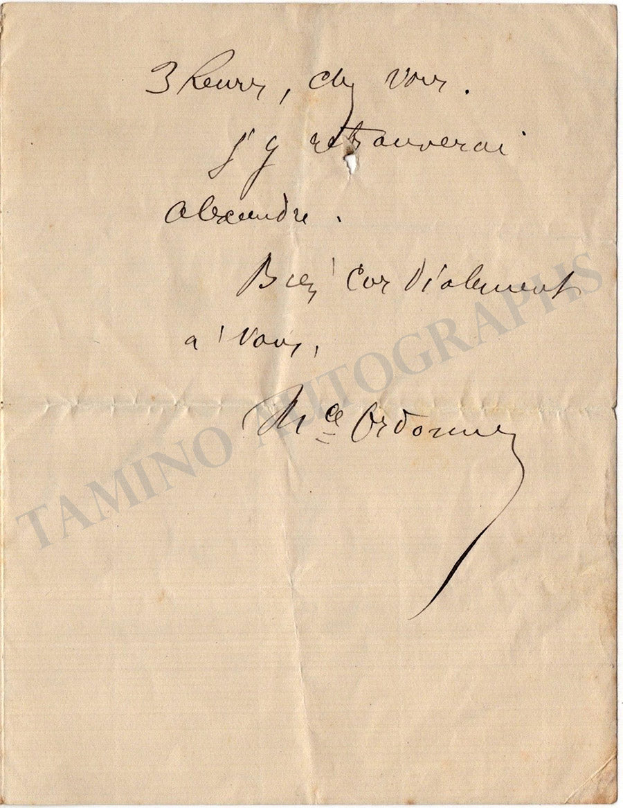 Ordonneau, Maurice - Autograph Letter Signed 1908
