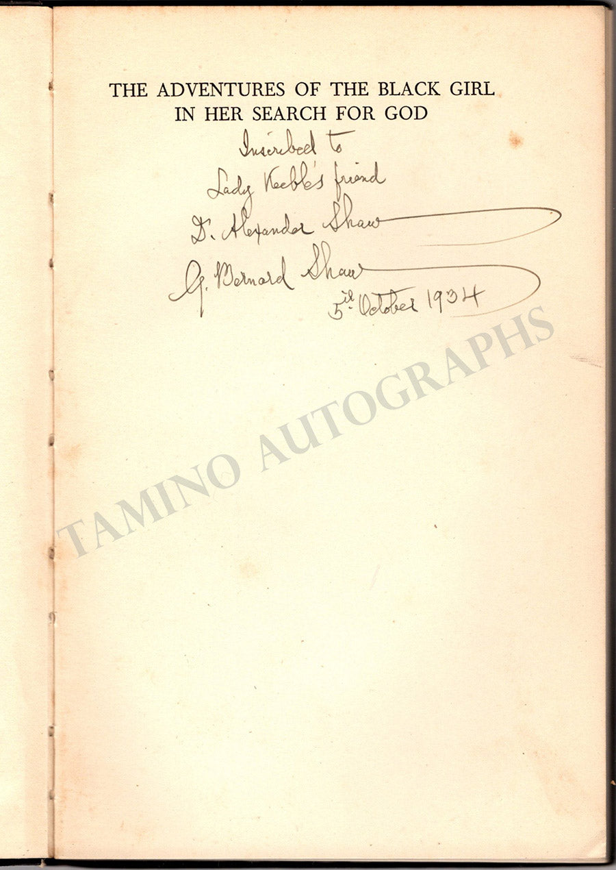 Shaw, George Bernard - Signed Book "The Adventures of the Black Girl in Her Search for God"