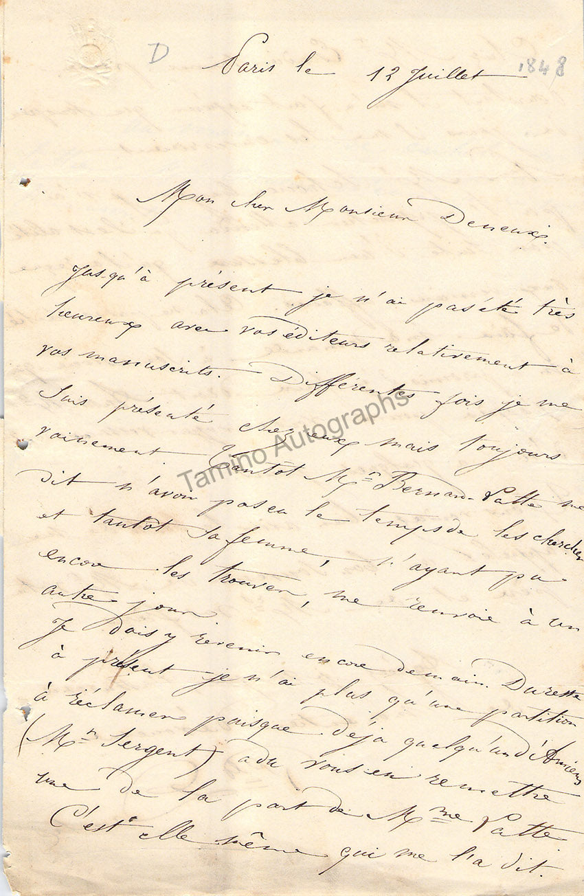 Bouchardy, Joseph - Autograph Letter Signed Bouchardy, Joseph - Autograph Letter Signed