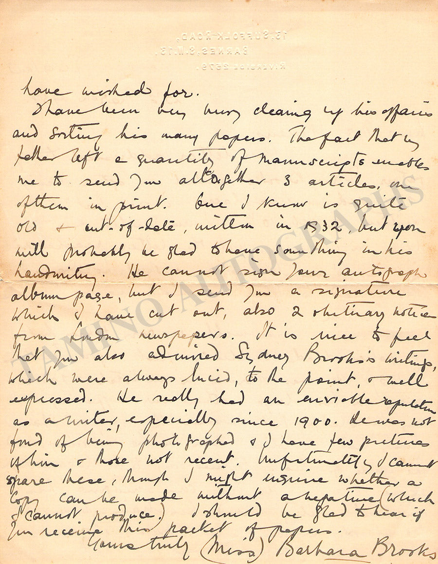 Sydney Brooks Autograph Essays