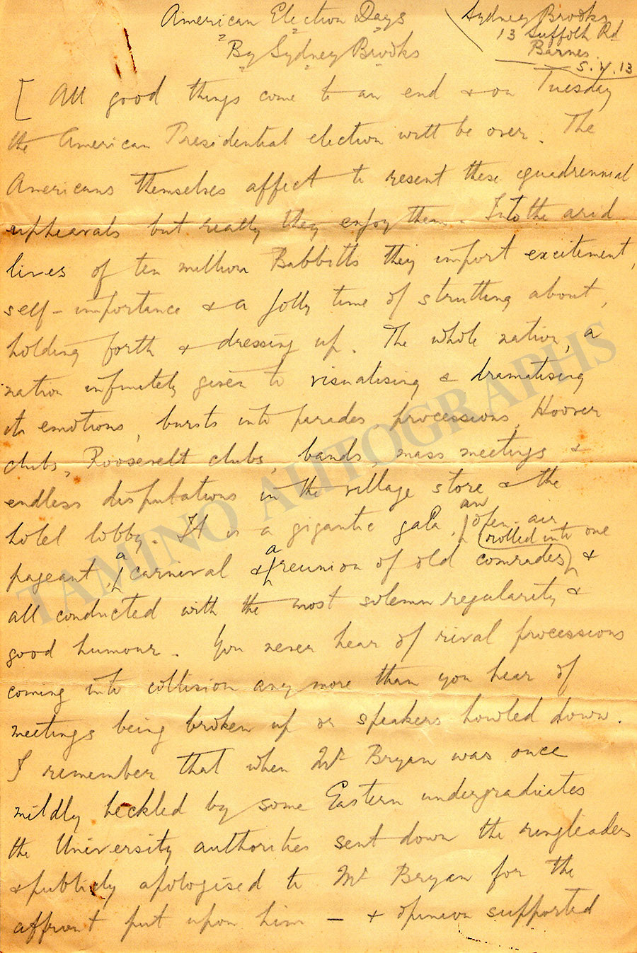 Brooks, Sydney - Autograph Essays
