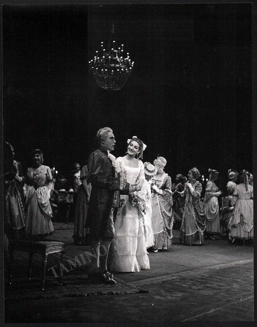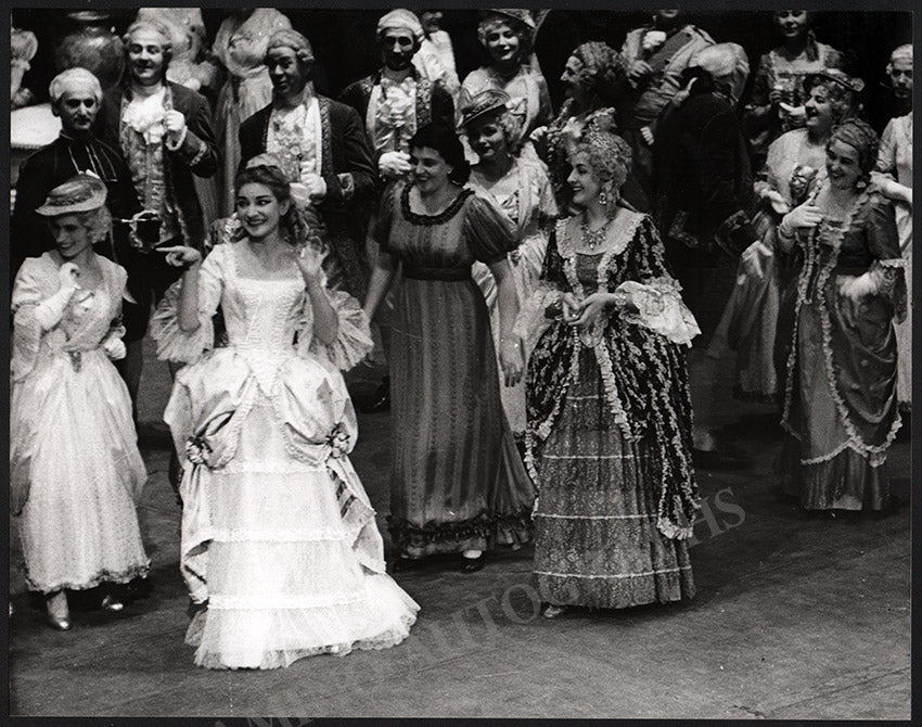 Gorgeous photographs (some modern prints) and unsigned, of the production of Umberto Giordano's opera Andrea Chénier at Teatro La Scala, 1955, featuring Maria Callas and Mario Del Monaco in the leading roles.