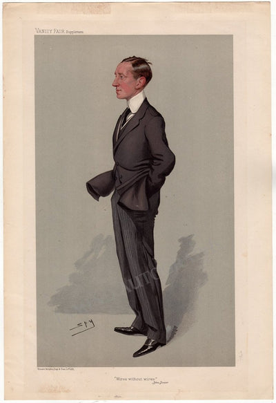 VANITY FAIR was a weekly periodic published in London between 1869 and 1914, its articles were about the current political, social, literary and financial news. Each issue featured a bound-in lithograph depicting an influential personality of the day. Lithographs were often accompanied by text which extolled or lamented the virtues or vices of the person/s being featured - and they are today highly collectible.