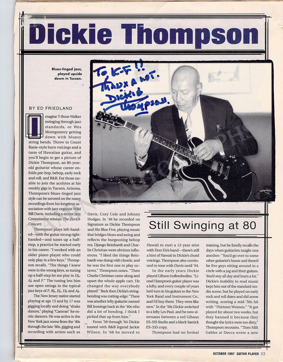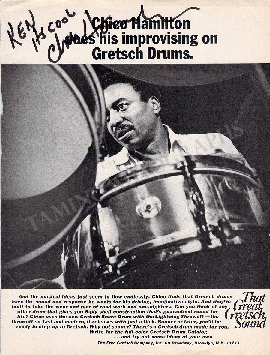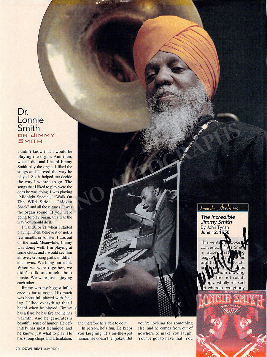 Single page from Downbeat Magazine with a partial interview signed by him. Size is 8 x 10.75 inches, in excellent condition.