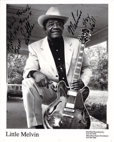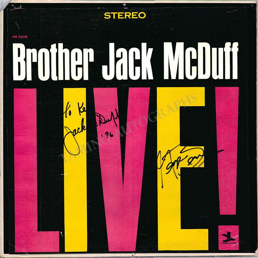 Clip from a poster or record ad signed mounted on an LP record sleeve from another musician signed by him and guitarist George Benson. Size is 11.4 x 11.5 inches, in very good condition.