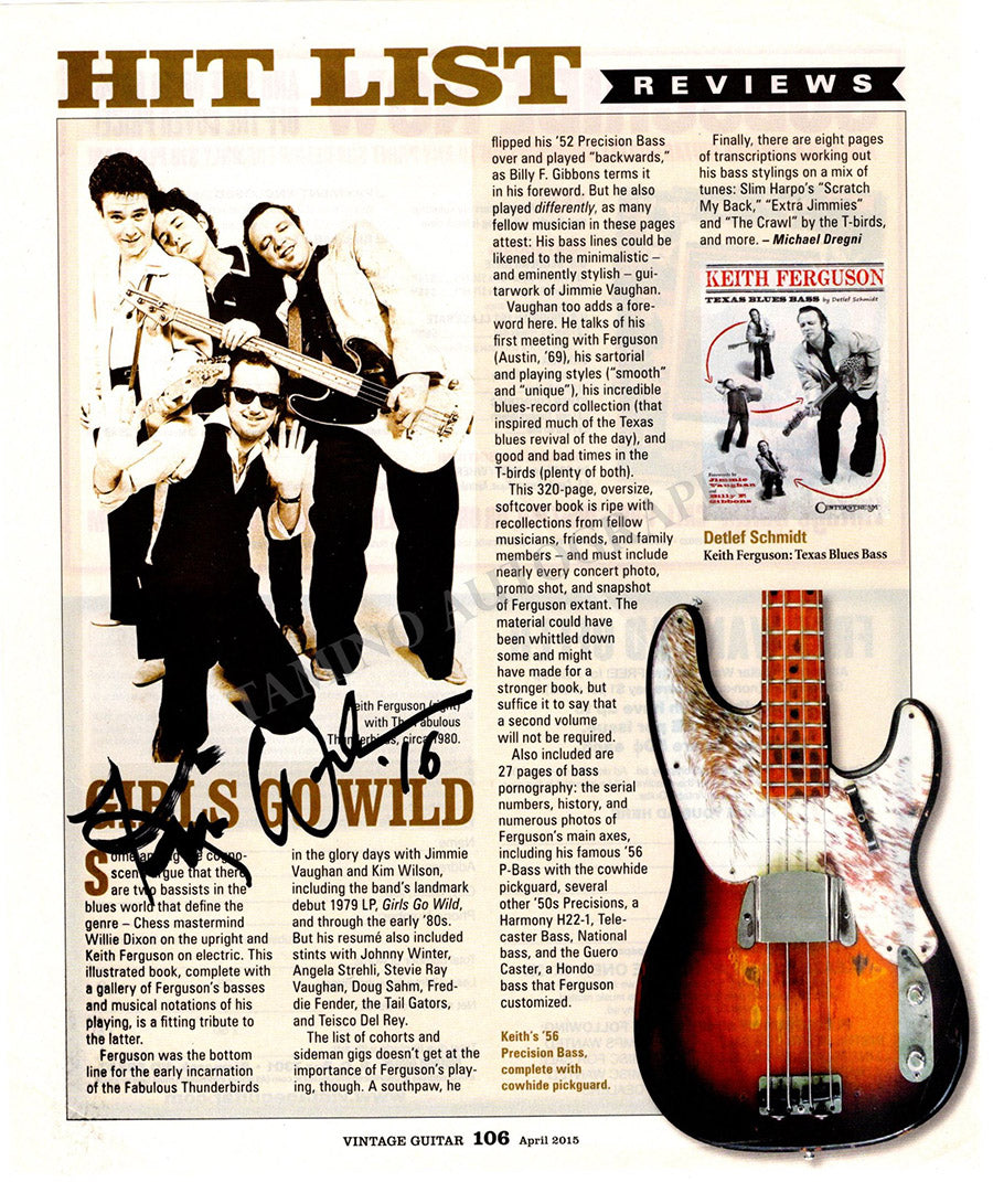 Signed page from a vintage guitar magazine (not full magazine). Size is 9 x 10.8 inches, in excellent condition.