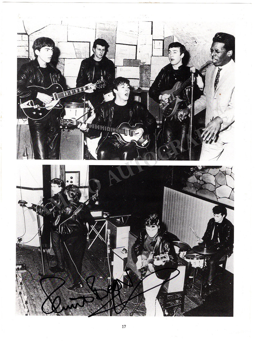 Page signed by him, shown as a member of The Beatles.  Size is 8.9 x 11.75 inches, in excellent condition.
