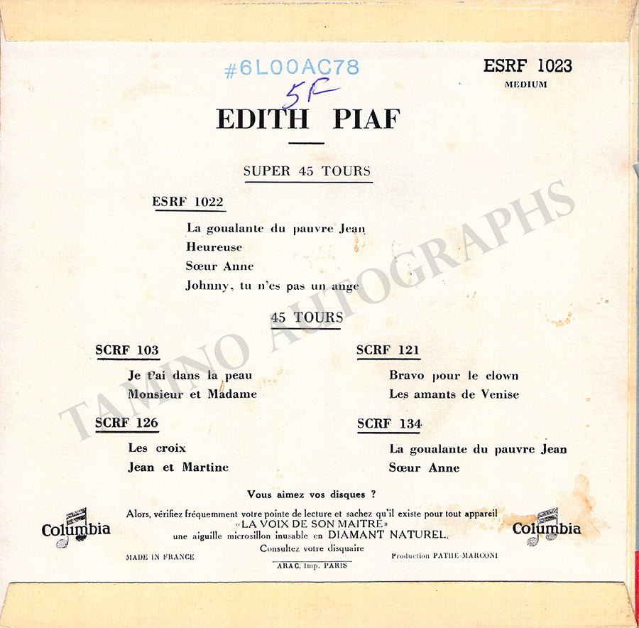 THE "TAMINO AUTOGRAPHS" semi-transparent legend over the pictures shown here does not exist in the actual item.