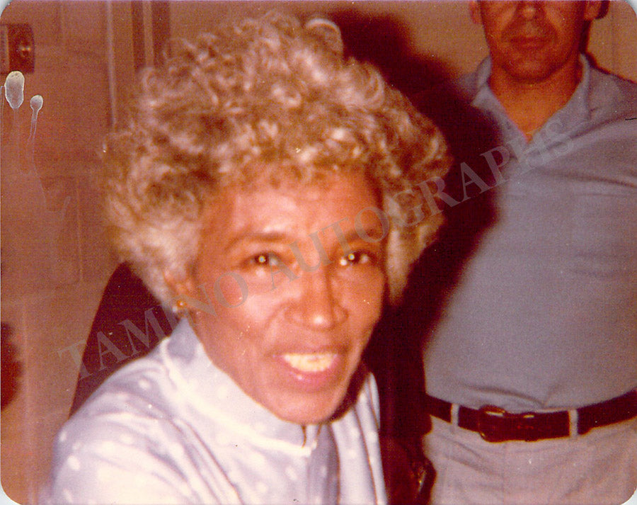 Autograph note with the letterhead of the hotel signed and dated by her in 1986. Size is 4.25 x 5.8 inches, folds, in very good condition.