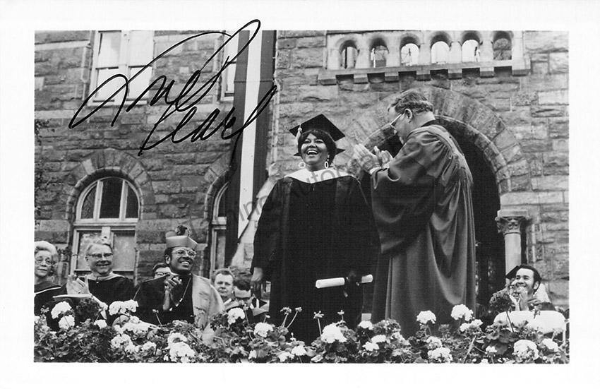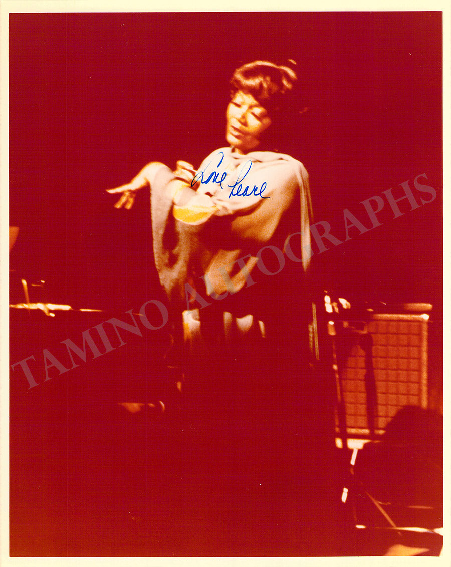 Fine color photograph signed by her, shown in live performance. Size is 8 x 10 inches, in excellent condition.