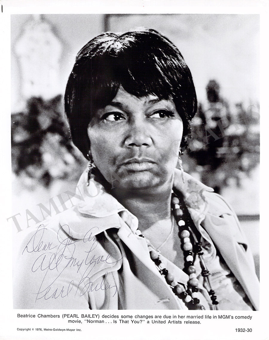 Fine black-and-white promo photograph of the film Norman... is that you? (1976) signed and inscribed by her with a short sentiment. Size is 7.9 x 10.1 inches, in excellent condition.