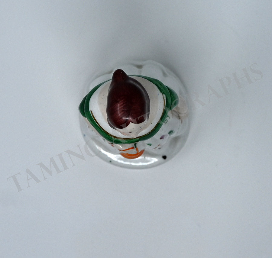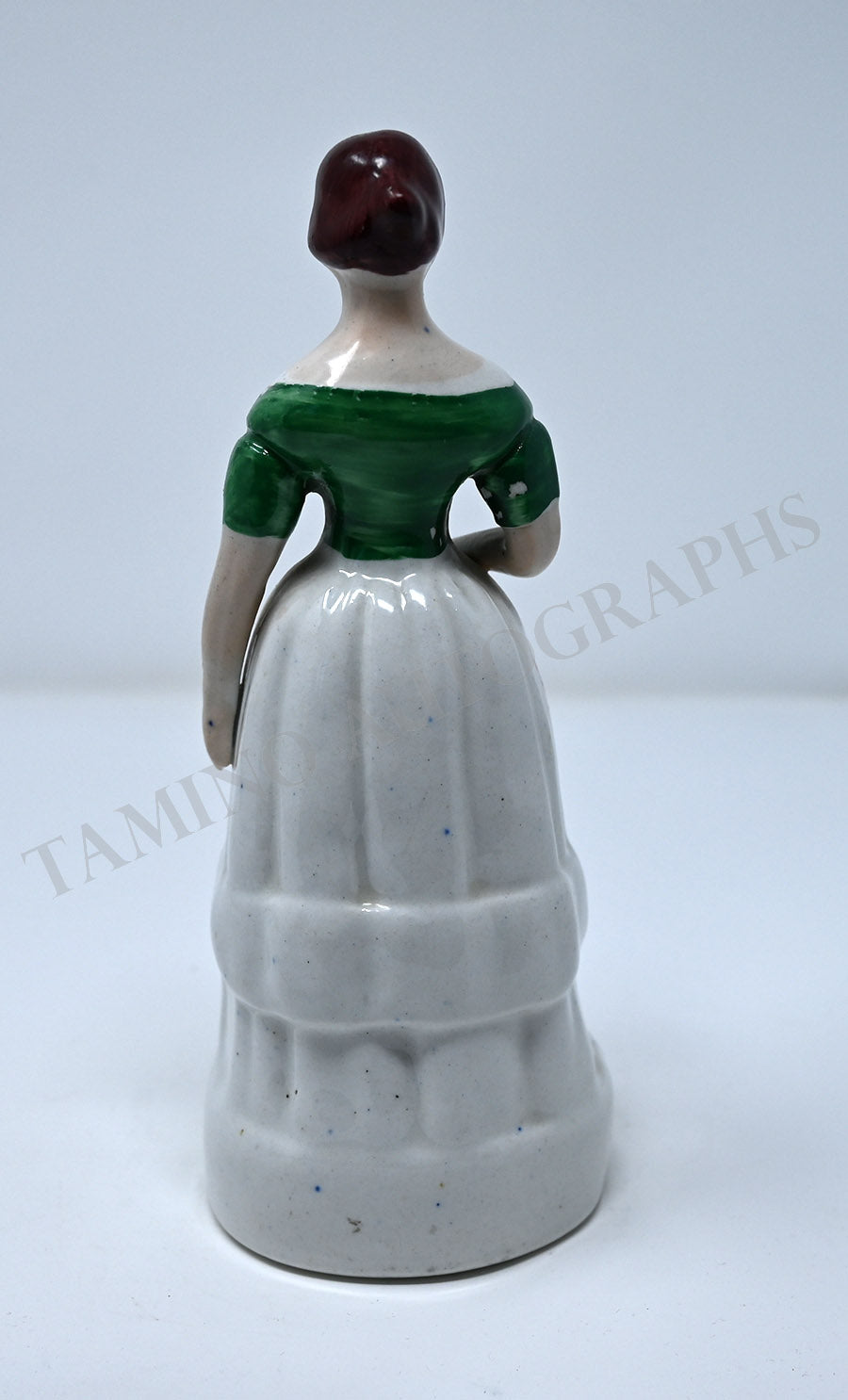 Nice two-piece porcelain figurine of her in role, beautifully painted. Size is 4.5 x 7.75 x 4.25 inches, in excellent condition.