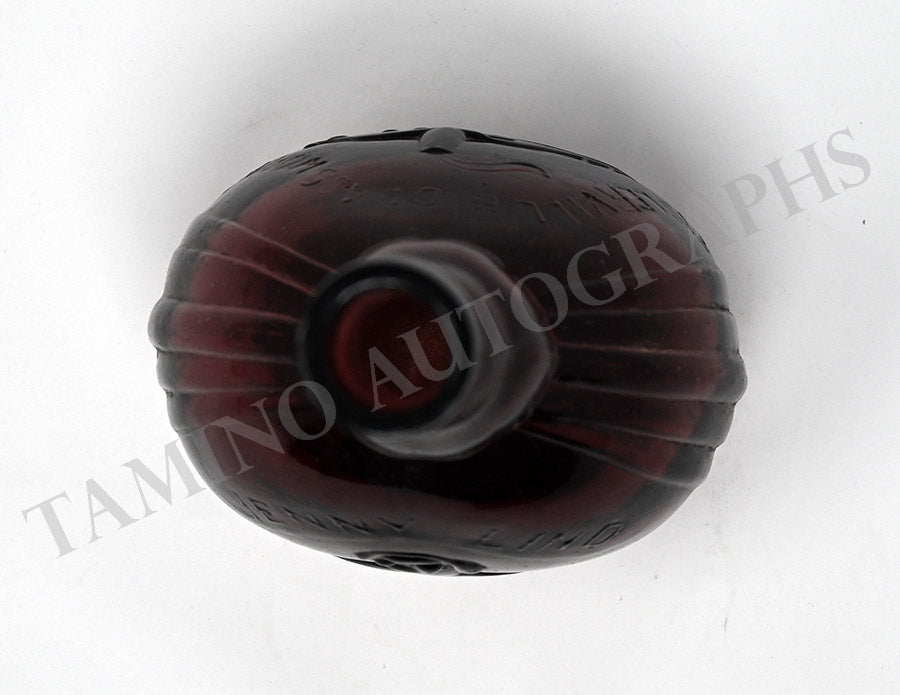 Nice vintage souvenir bottle with her molded face on it plus the words 'Jenny Lind' above; manufactured by Fislerville Glass Works according to information on verso. Size is 5.5 x 9 x 3.75 inches, in excellent condition.