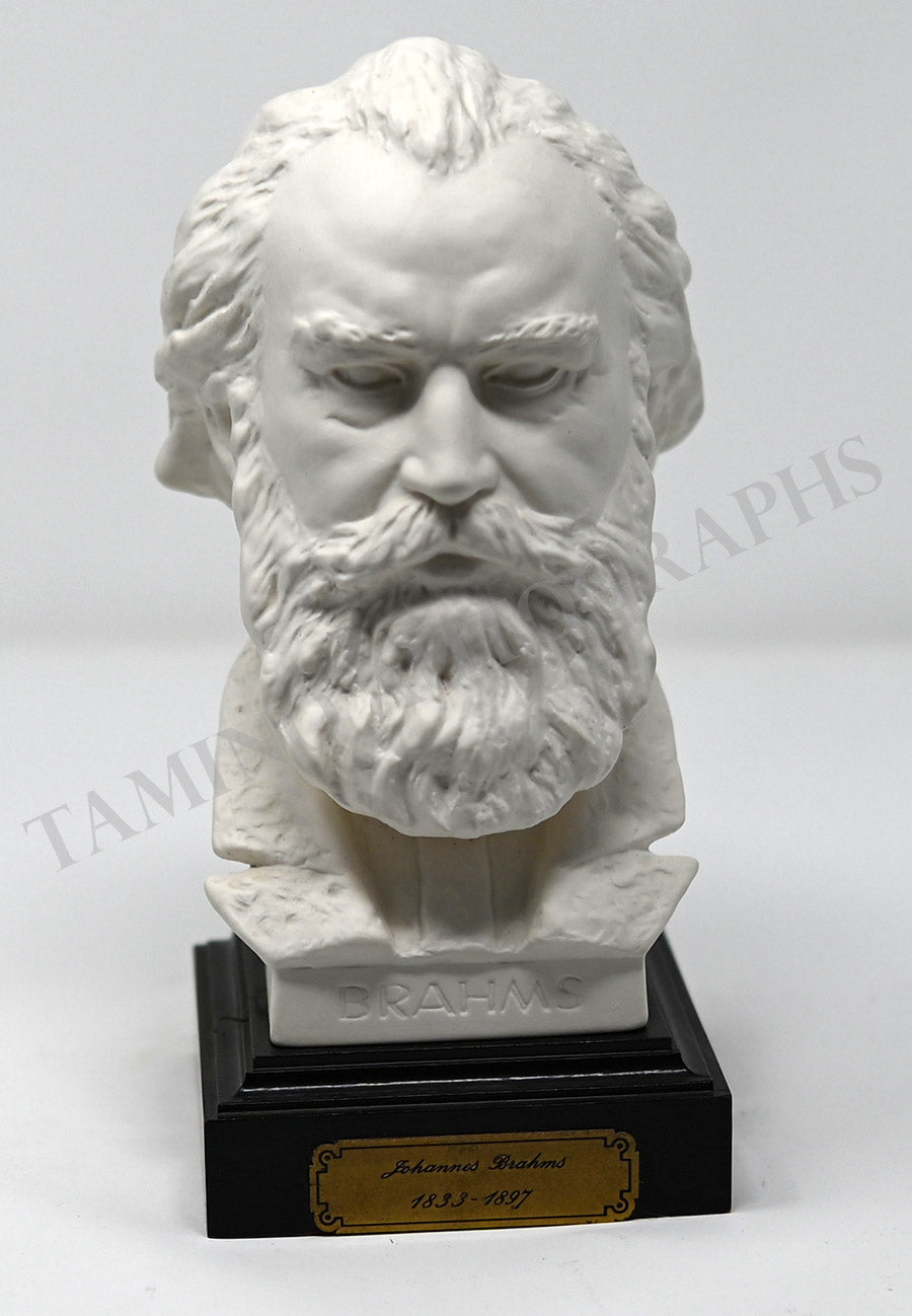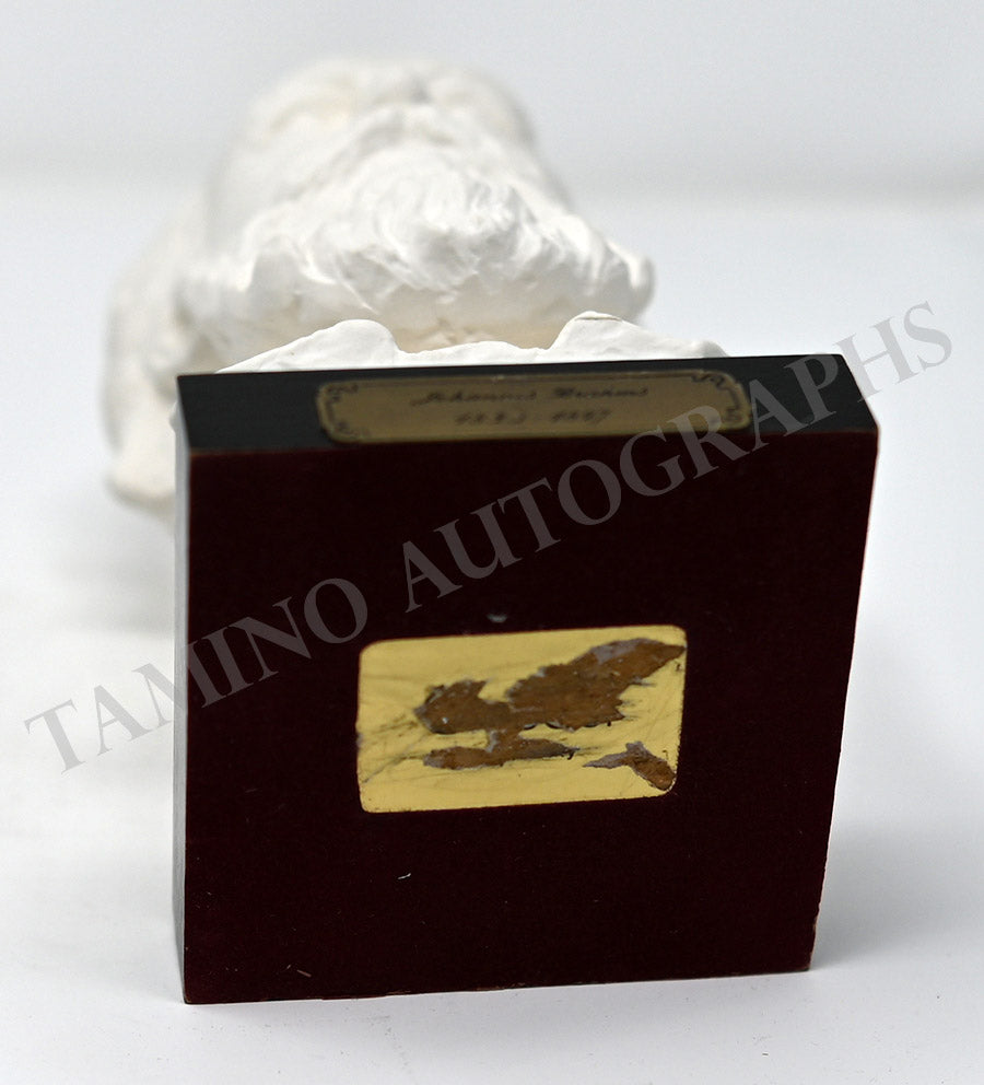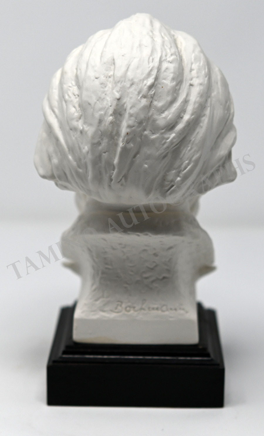 Nice biscuit bust of the composer over a wooden base. Size is 4.25 x 9 x 4.5 inches, in excellent condition.