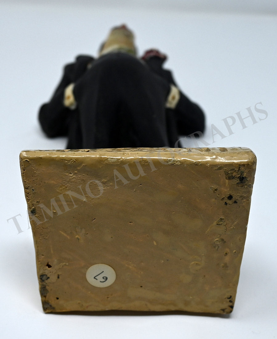 Gorgeous full body clay (probably) statuette of the composer by artist L. Rizzi. Size is 4.75 x 12 x 4 inches, some scratches over the face, probably missing cigarette, in overall very good condition.