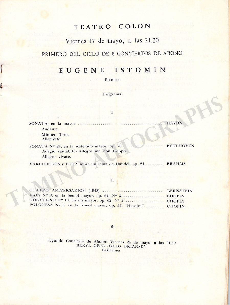 Istomin, Eugene - Concert Program Buenos Aires 1957 Istomin, Eugene - Concert Program Buenos Aires 1957