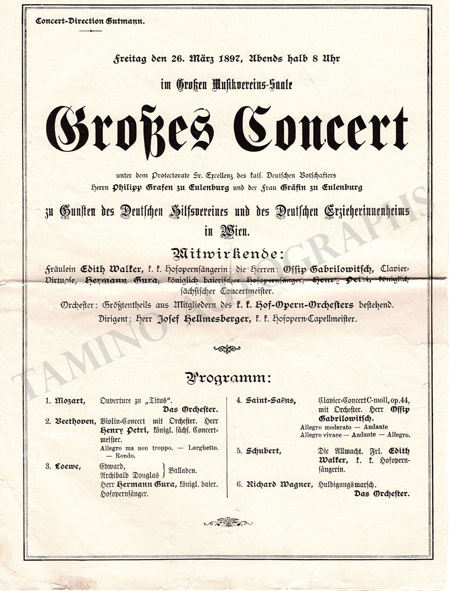Gabrilowitsch, Ossip - Concert Program Vienna 1897