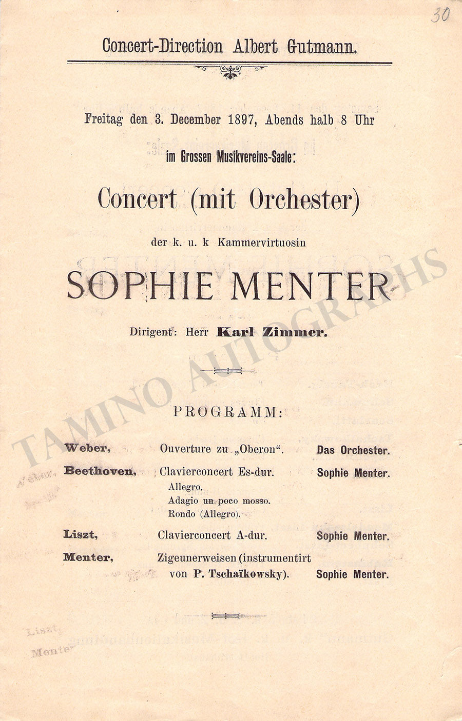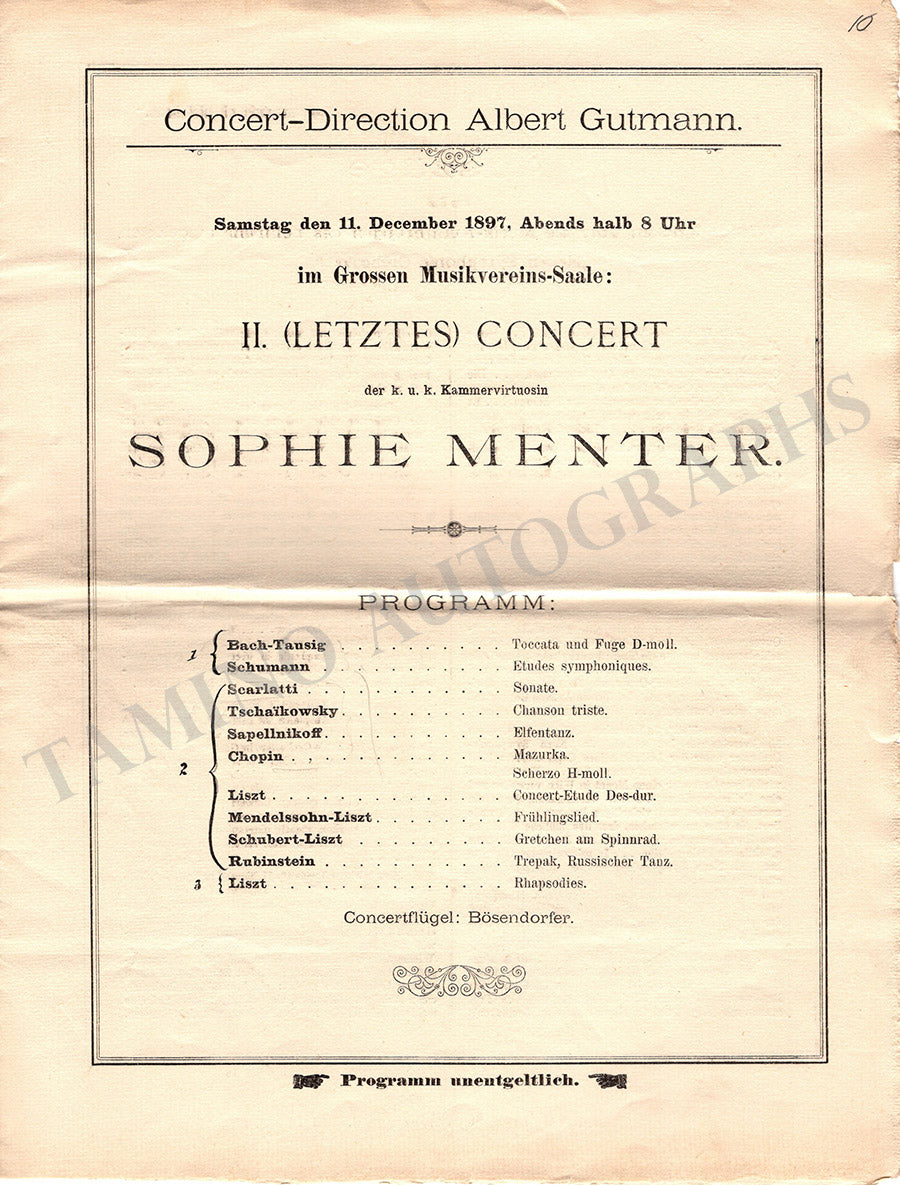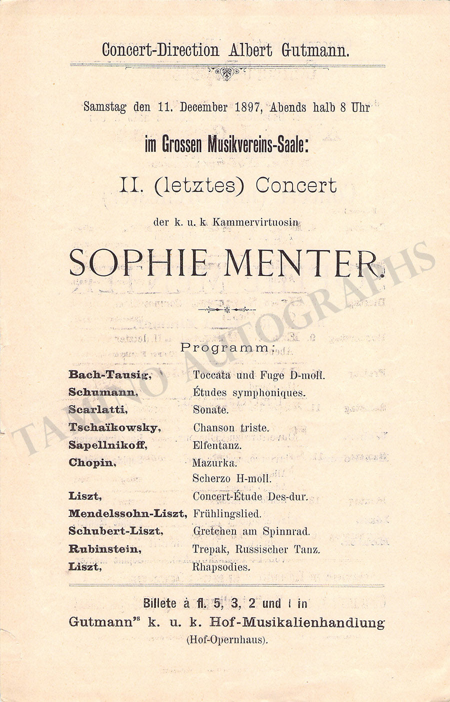 Menter, Sophie - Set of 3 Concert Programs Vienna 1897 & 1900