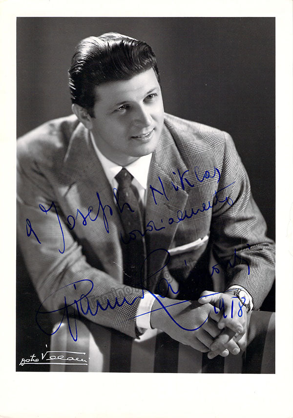 Italian tenor (1923-2008), prominent from the 1950s to the early 1970s. Signed photograph, shown as himself, inscribed, stamped on verso by photographer A. Villiani, Bologna. Size is 5 x 7 inches, in excellent condition.