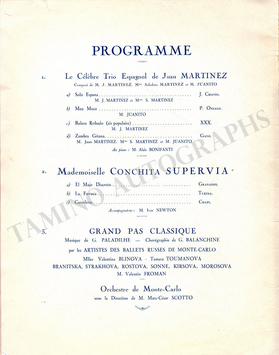 Conchita Supervia & Others Autographs Program Montecarlo