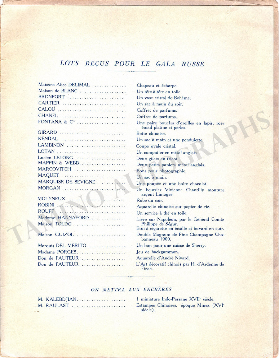Program for a gala dinner performance at the Hotel Paris, Montecarlo, during the 1910s signed on the cover by the star Spanish mezzo-soprano, her pianist Ivor Newton, and other unidentified signers.