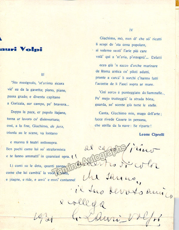 Lauri-Volpi, Giacomo - Signed Booklet 1931